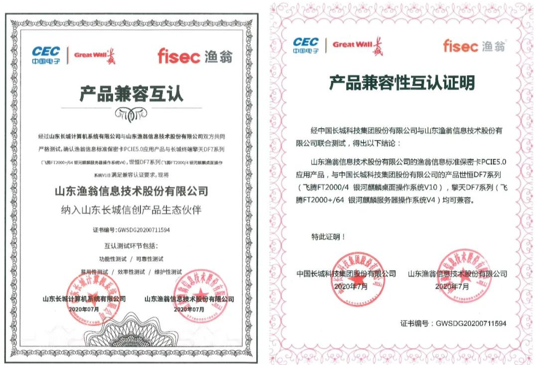 从功能性、可靠性、易用性、效率性、维护性五大环节,OKPay钱包(中国)信息与长城进行了严格的联合测试。最终确认OKPay钱包(中国)PCI-E 5.0密码卡与长城终端产品——世恒DF7系列(飞腾FT2000/4 银河麒麟桌面操作系统V10),擎天DF7系列(飞腾FT2000+/64 银河麒麟服务器操作系统V4),满足兼容认证要求。并且,OKPay钱包(中国)信息此次成为了长城信创产品生态伙伴,携手构建安全新生态。